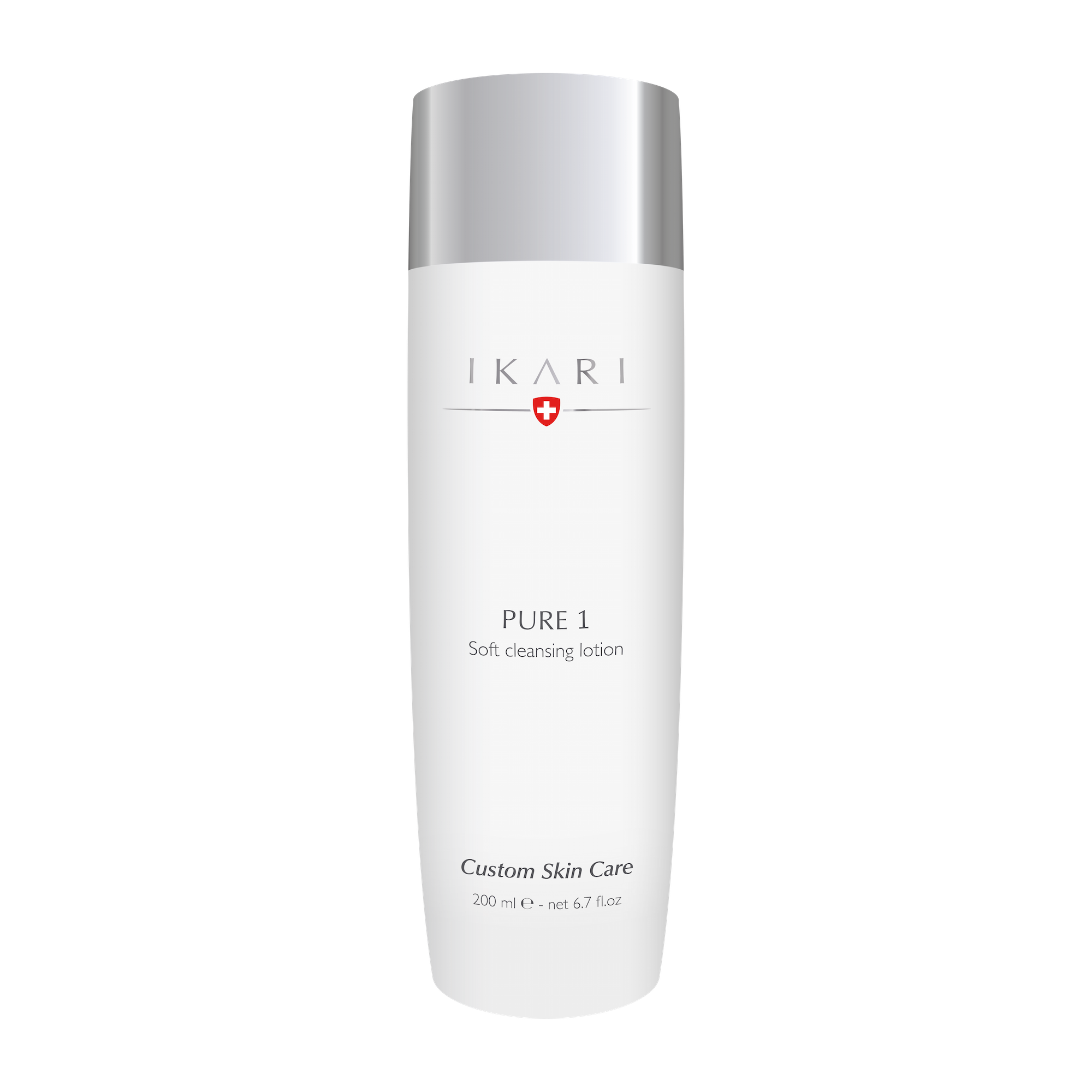 Ikari Pure 1 Soft cleaning lotion 100ml. De Pure 1 is een vloeibare, transparante, gelachtige lotion. Deze lotion is een aangename, natuurlijk geparfumeerde reiniger die de huid hydrateert en verzacht. De Pure 1 is makkelijk in het gebruik en daardoor uiterst geschikt voor de actieve, veeleisende moderne vrouw. Ideaal voor de meest gevoelige huid.