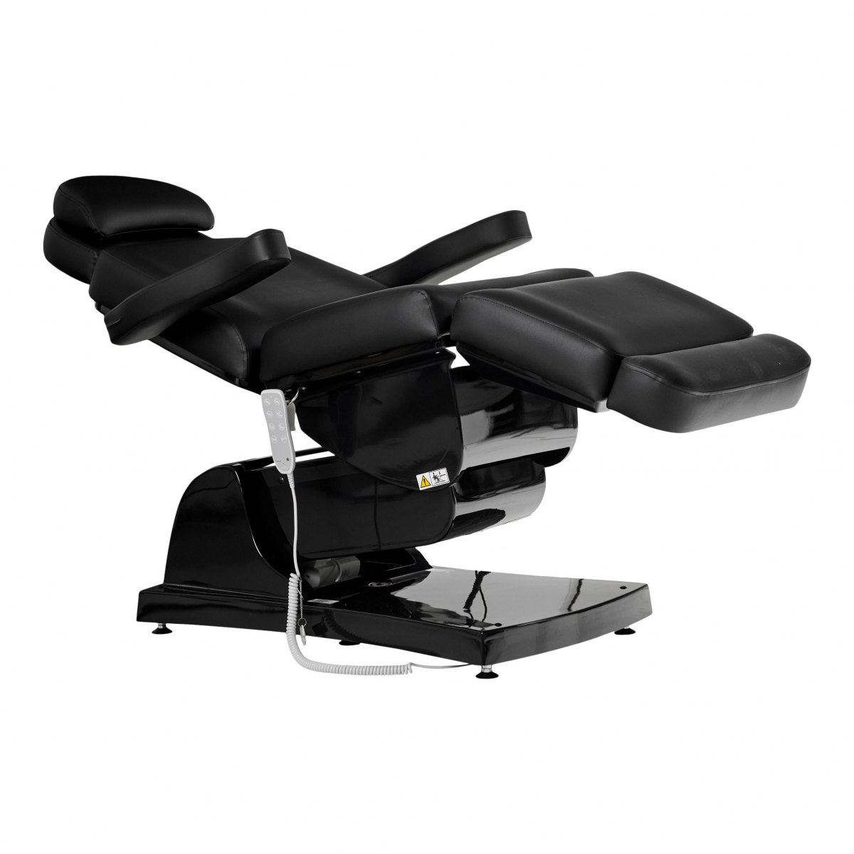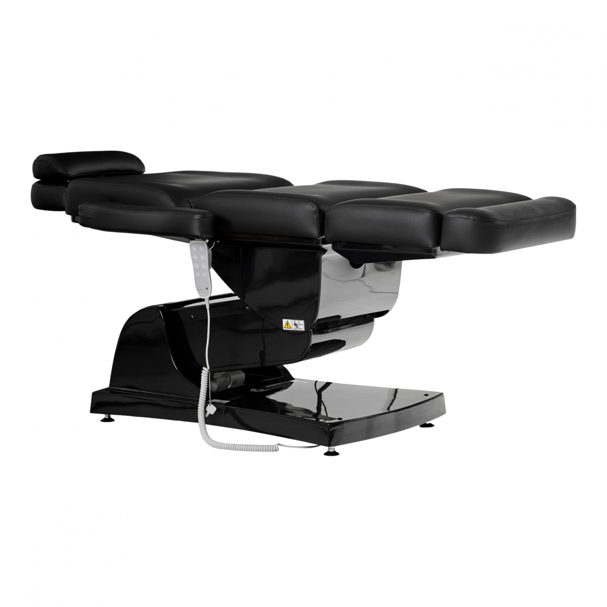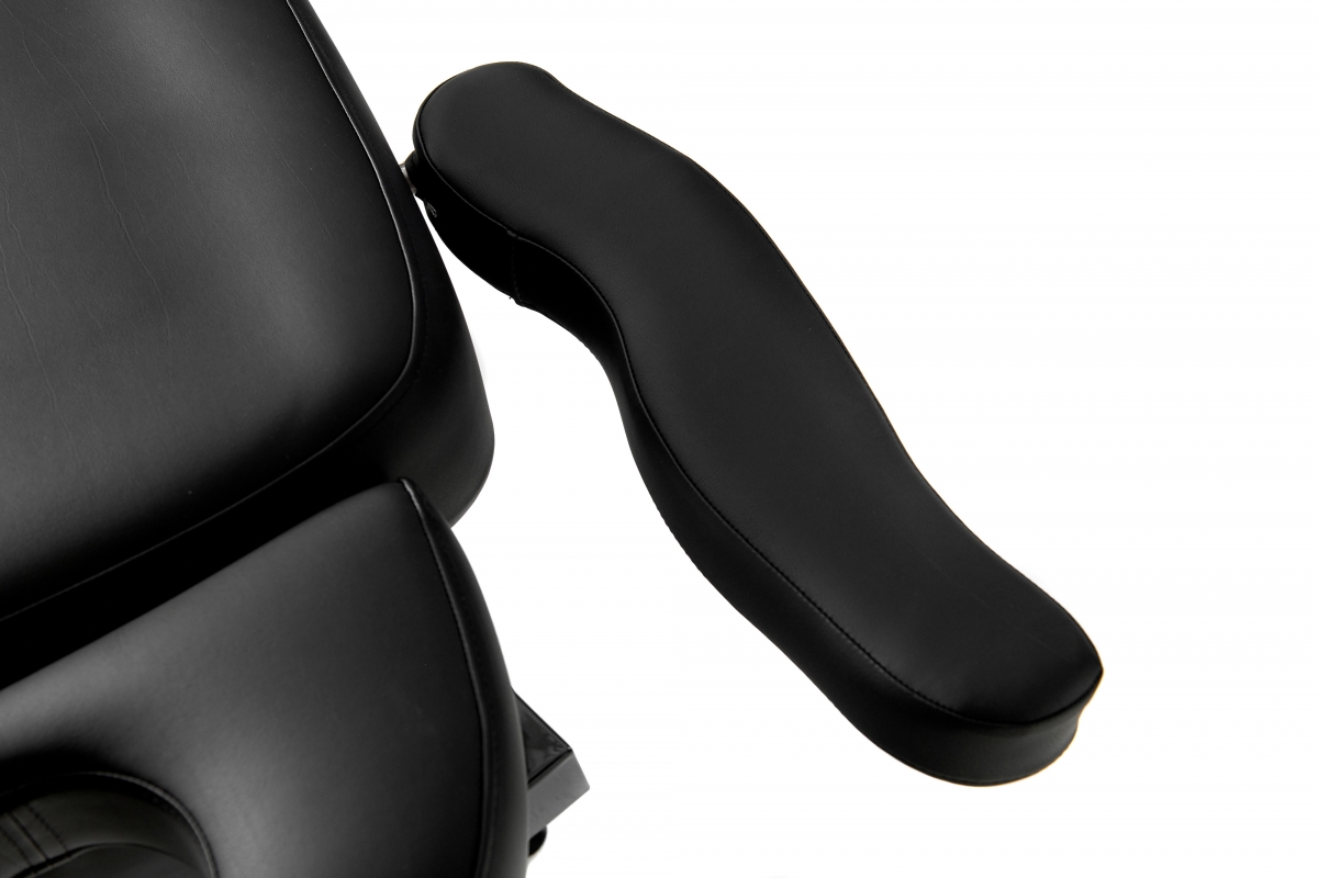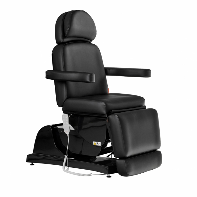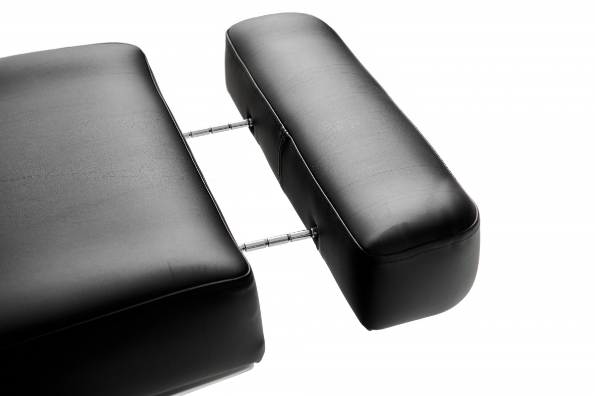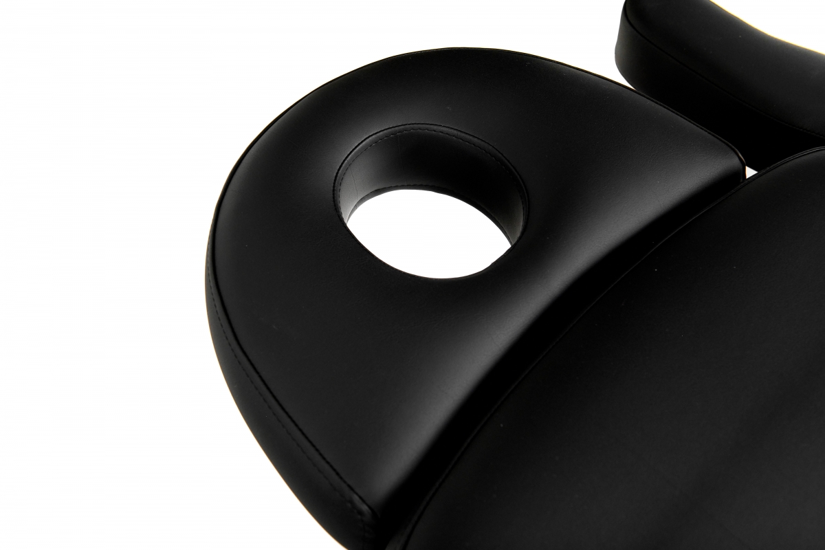 Dit multifunctionele bed is geschikt voor cosmetica, massage en voetverzorging. De hoogte en helling van het bed, evenals het rug- en beengedeelte, kunnen eenvoudig worden aangepast met een afstandsbediening. De vier krachtige motoren lopen soepel en stil. Een comfortabele instap wordt mogelijk gemaakt door het bijna 90° opklapbare beengedeelte. Hoofdsteun en voeteneinde kunnen door uittrekken optimaal worden aangepast aan elke lichaamslengte. Maar ze kunnen ook volledig worden verwijderd. De armleuningen kunnen naar achteren worden geklapt en bewegen met je mee wanneer je de ligpositie aanpast. Er is een gewatteerde gezichtsuitsnede onder het verwijderbare nekkussen.