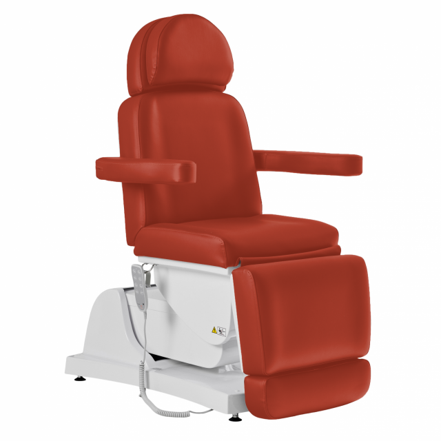 Dit multifunctionele bed is geschikt voor cosmetica, massage en voetverzorging. De hoogte en helling van het bed, evenals het rug- en beengedeelte, kunnen eenvoudig worden aangepast met een afstandsbediening. De vier krachtige motoren lopen soepel en stil. Een comfortabele instap wordt mogelijk gemaakt door het bijna 90° opklapbare beengedeelte. Hoofdsteun en voeteneinde kunnen door uittrekken optimaal worden aangepast aan elke lichaamslengte. Maar ze kunnen ook volledig worden verwijderd. De armleuningen kunnen naar achteren worden geklapt en bewegen met je mee wanneer je de ligpositie aanpast. Er is een gewatteerde gezichtsuitsnede onder het verwijderbare nekkussen.