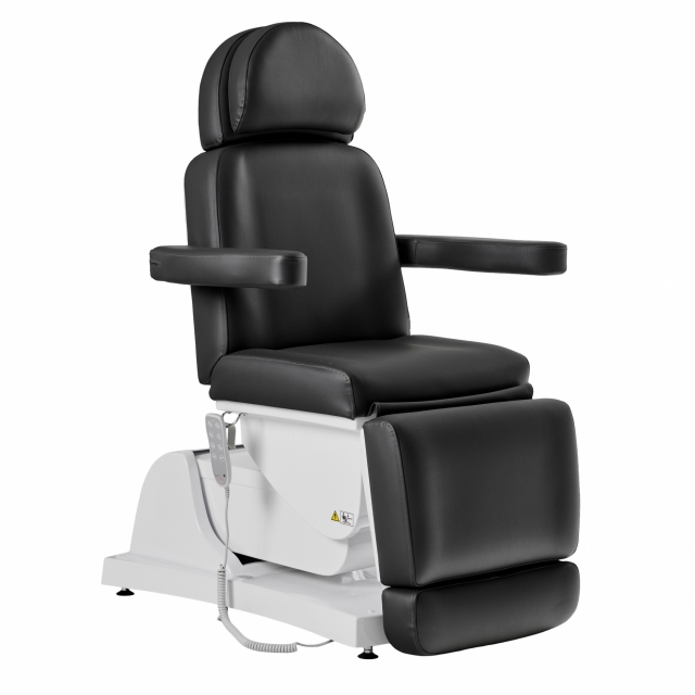 Dit multifunctionele bed is geschikt voor cosmetica, massage en voetverzorging. De hoogte en helling van het bed, evenals het rug- en beengedeelte, kunnen eenvoudig worden aangepast met een afstandsbediening. De vier krachtige motoren lopen soepel en stil. Een comfortabele instap wordt mogelijk gemaakt door het bijna 90° opklapbare beengedeelte. Hoofdsteun en voeteneinde kunnen door uittrekken optimaal worden aangepast aan elke lichaamslengte. Maar ze kunnen ook volledig worden verwijderd. De armleuningen kunnen naar achteren worden geklapt en bewegen met je mee wanneer je de ligpositie aanpast. Er is een gewatteerde gezichtsuitsnede onder het verwijderbare nekkussen.