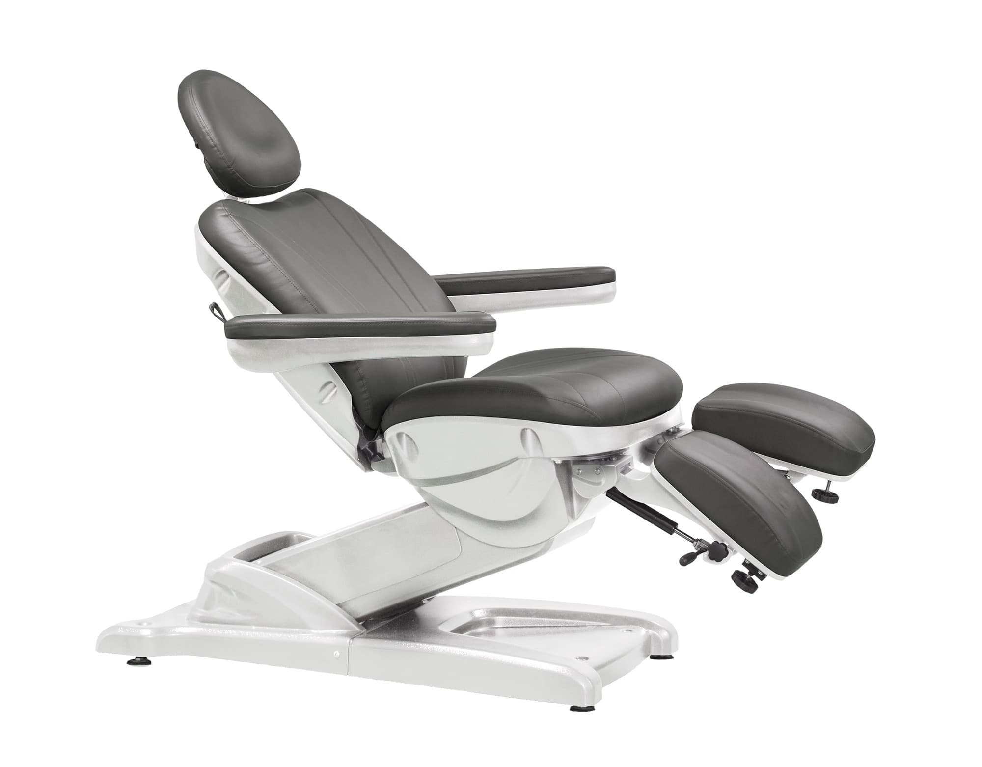 Deze behandelstoel valt op door zijn deelbare beensteunen. Erg populair dus bij Pedicure's / Podologen.
