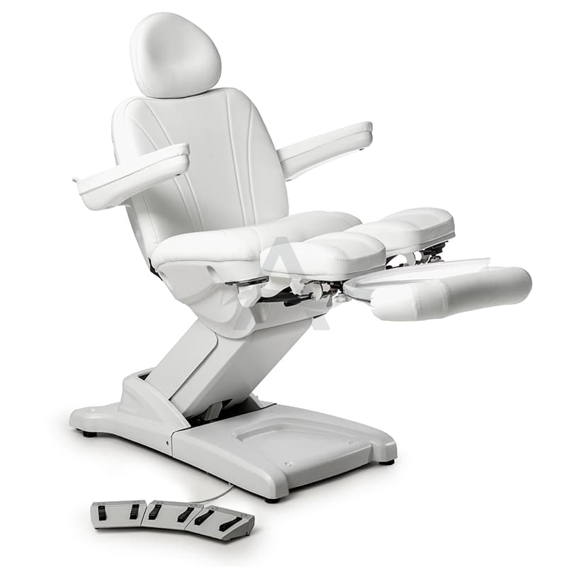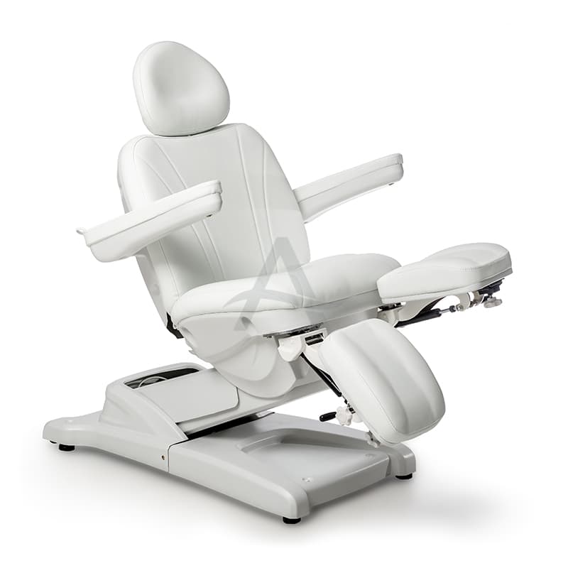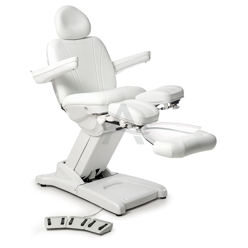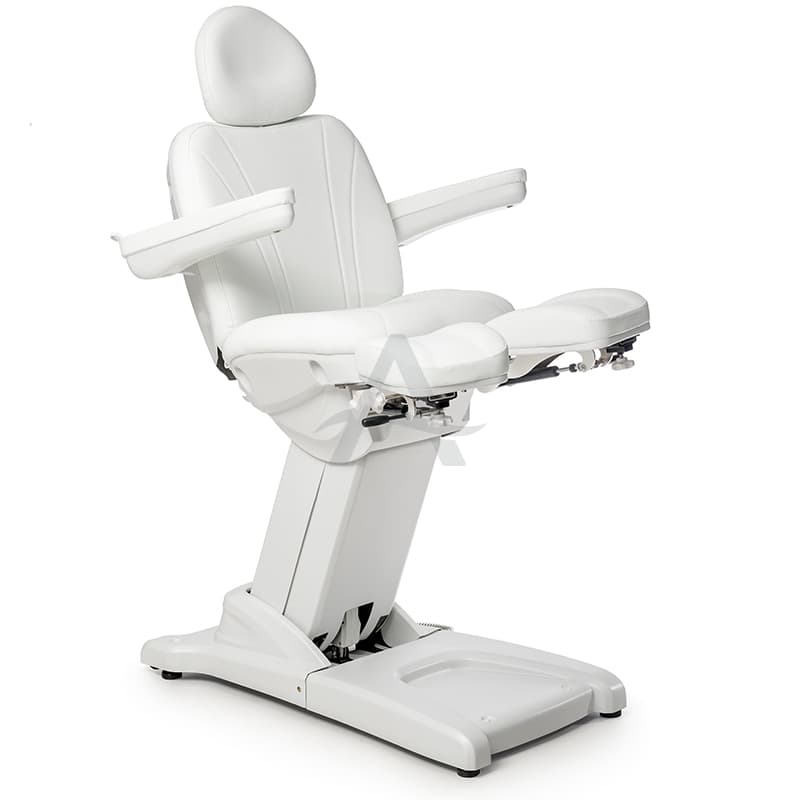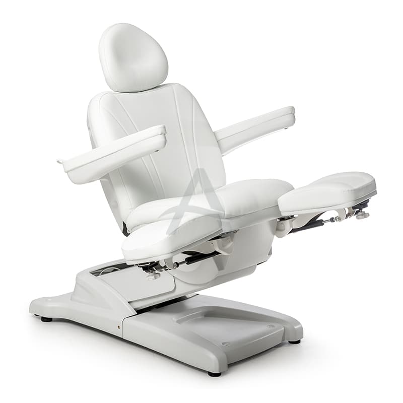 Deze behandelstoel valt op door zijn deelbare beensteunen. Erg populair dus bij Pedicure's / Podologen.