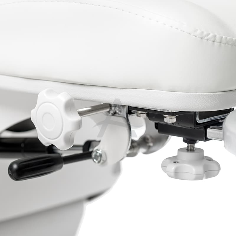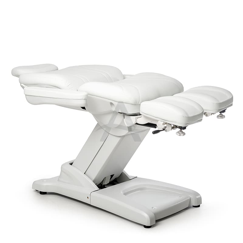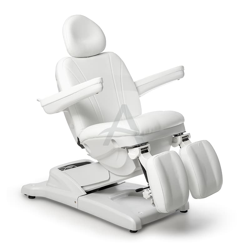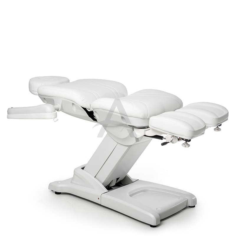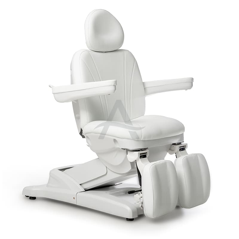 Deze behandelstoel valt op door zijn deelbare beensteunen. Erg populair dus bij Pedicure's / Podologen.