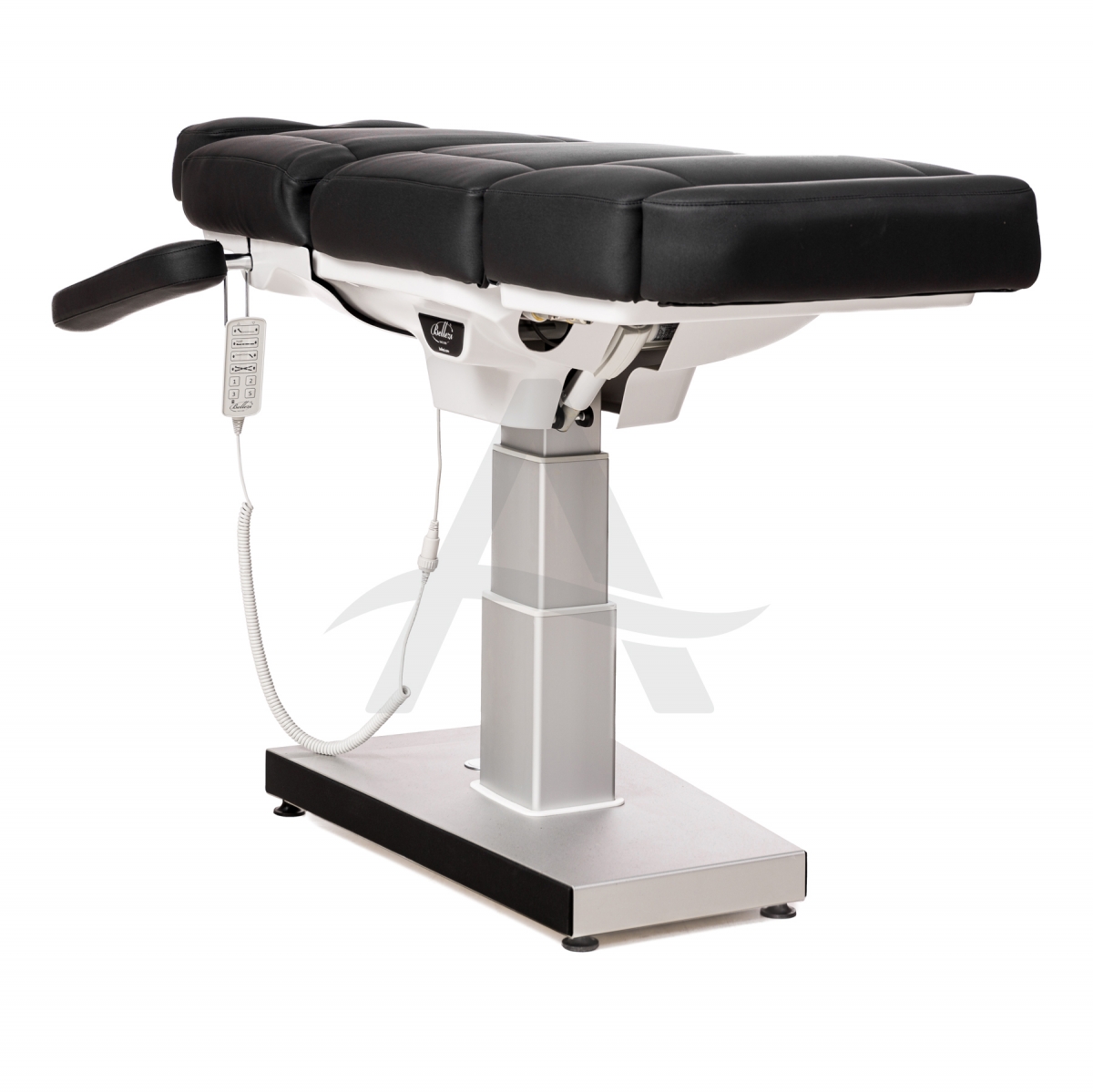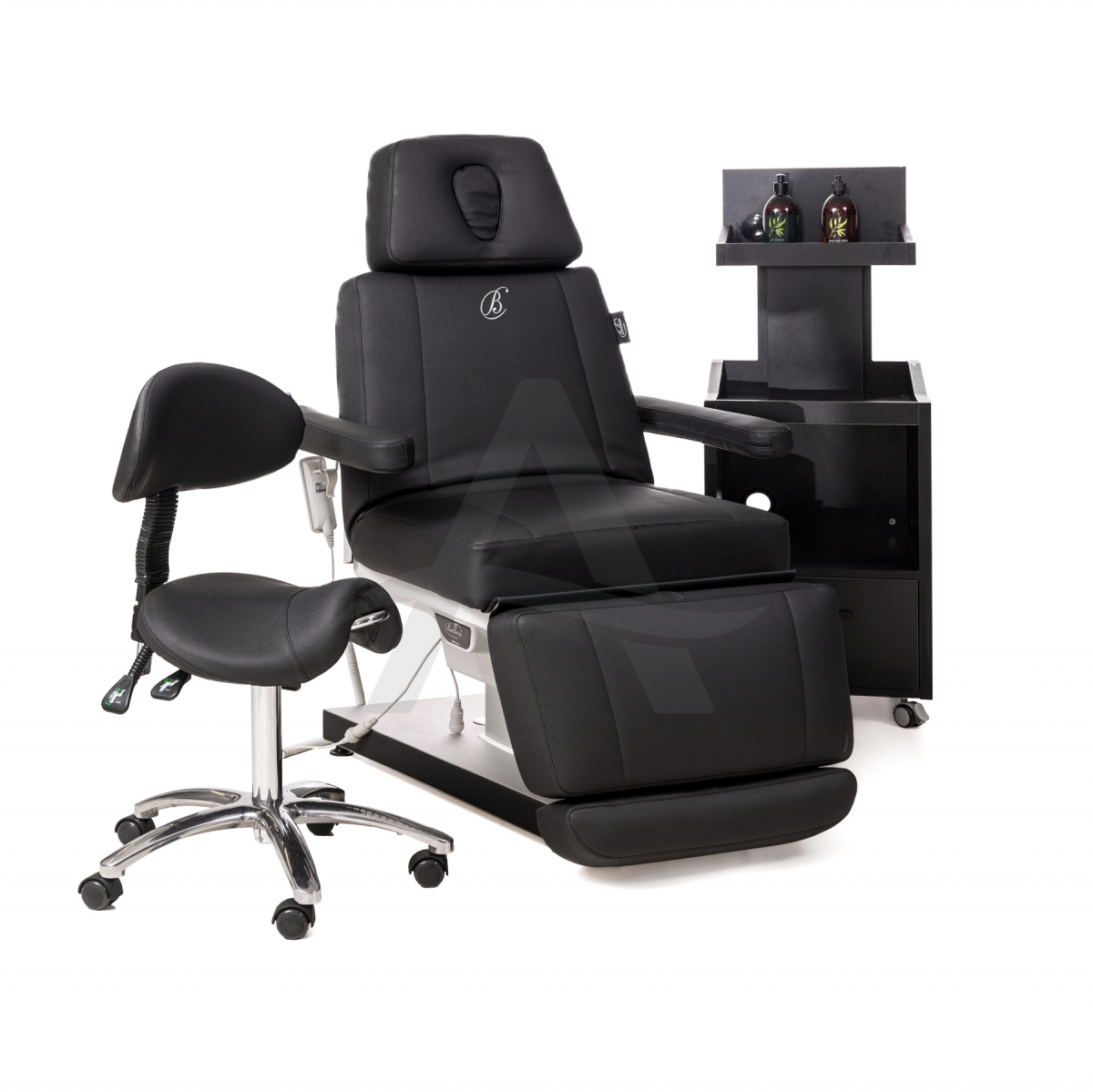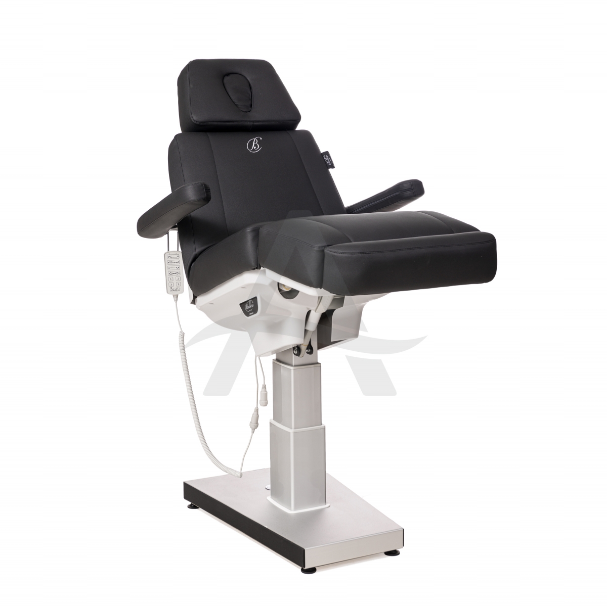 De aluminium voet maakt het mogelijk om verticaal omhoog en omlaag te gaan, hierdoor neemt de behandelstoel minder ruimte in dan vergelijkbare behandelstoelen met een hefboomsysteem. De behandelstoel is uitermate geschikt voor schoonheid- pedicure en lichaamsbehandelingen.