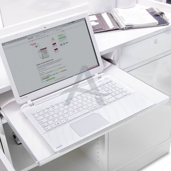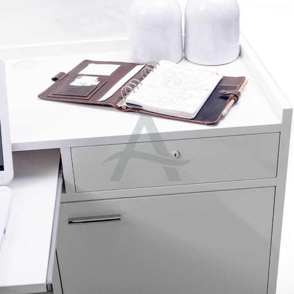 Receptie desk VISMARA Cube Bis. Front panelen leverbaar in 3 kleuren: