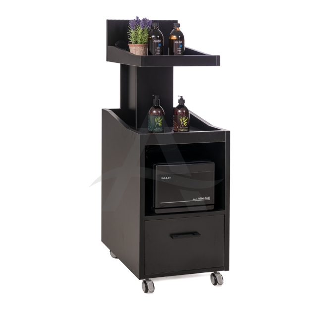 In uw salon heeft u het liefst alles binnen handbereik. De trolleys van Bellezi bieden ruimte voor al uw producten, instrumenten en apparatuur. Buiten dat biedt de trolley voldoende stabiliteit wanneer deze verplaatst wordt. Accesoires en towel heater (optie) op de foto niet inbegrepen in de prijs.