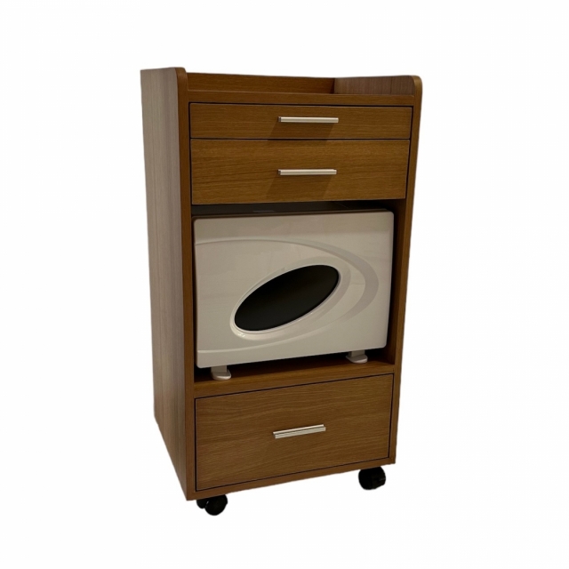 De Trolly Vivaldi Line PRO wordt veel gebruikt in salons en medi spa's. De Trolly Vivaldi Line PRO is een multifunctionele en moderne spa-trolley. Deze trolley heeft een voorziening om goederen op te bergen op de bovenste plank, een uittrekbaar dienblad en twee opbergladen. Er is een open tussenruimte om uw handdoeken of handdoeksterilisatiekast op te bergen. Als optie kunt u een loupelamp houder bevestigen aan de trolly. Handdoekverwarmer is een betalende optie.