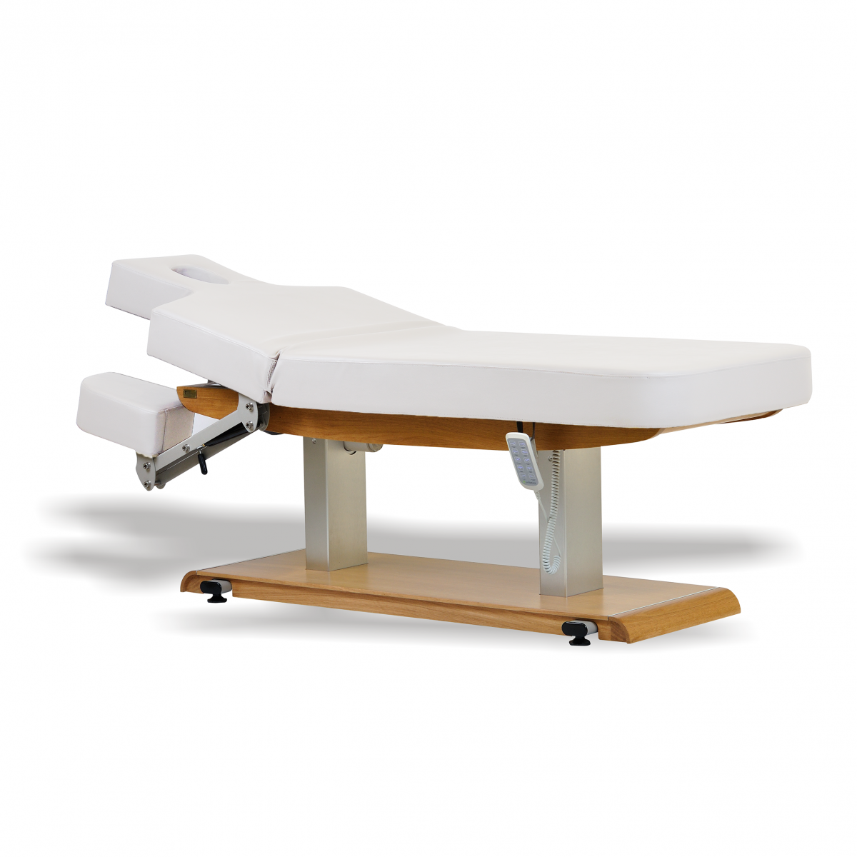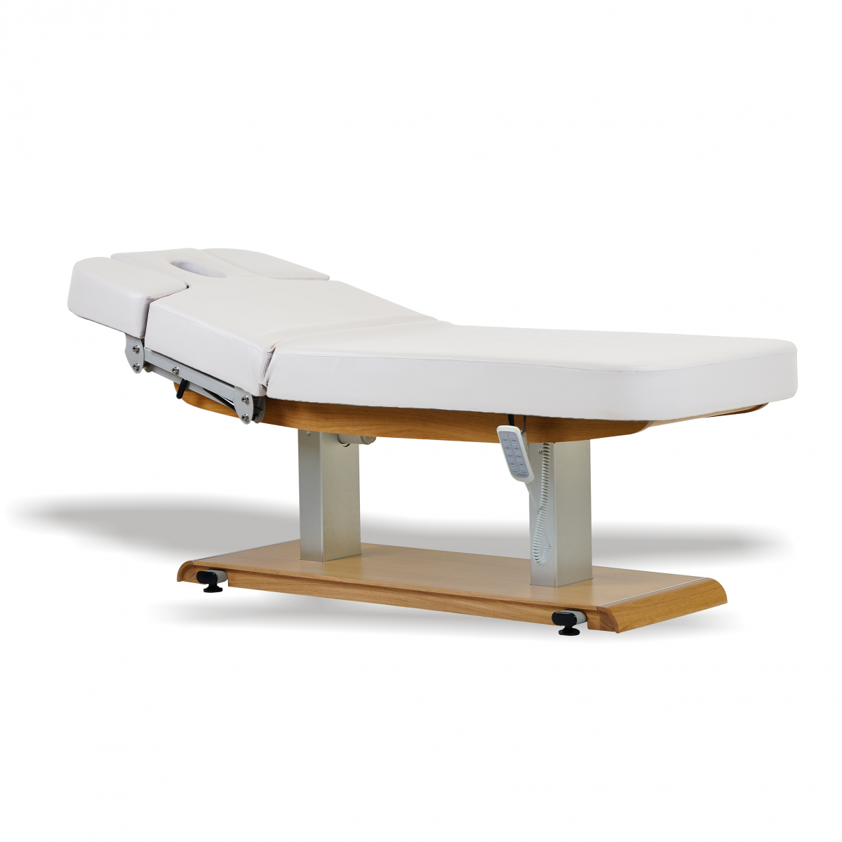 De Spa Wellness behandeltafel TEJAS met gratis verwarming is een volledig elektrisch professioneel spa- behandelings bed met trendelenburg (kantel)-functie. Volledig elektrisch (4 motoren) en standaard kenmerken zijn elektronische hoogteverstelling, rug-, been- en voetgedeelten zijn allemaal elektronisch verstelbaar, pneumatisch neerlaatbare armleuningen en neusgleuf. Zijn Vervaardigd in combinatie van exotisch massief hout en natuurlijk houtfineer van Amerikaans eiken, Indisch teakhout of Engelse esdoorn. Verkrijgbaar in een reeks houtafwerkingen en kunstleer naar keuze. Nu tijdelijk met gratis verwarming. Bekijk de foto's onderstaande video voor gedetailleerde informatie over dit product.