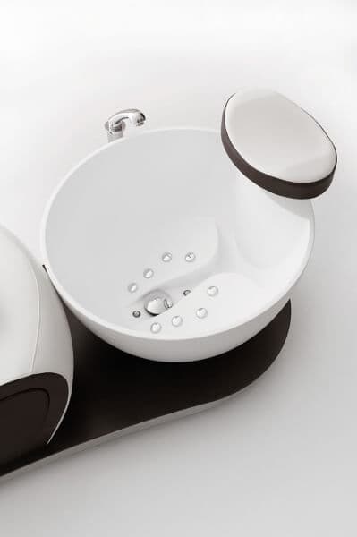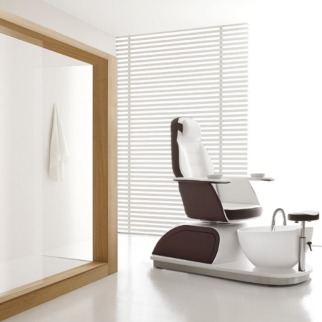 Long Island is het top model onder de Spa Pedicure units. Italiaans design én productie. De stoel kan 90 graden draaien en is voorzien van twee Manicure kommetjes. Het water bassin heeft een handdouche en is gemaakt van makkelijk schoon te maken materiaal. Het bassin is te voorzien van een whirlpool met licht (optie | Kit cromo + whirlpool, meerprijs € 1180.50 ).