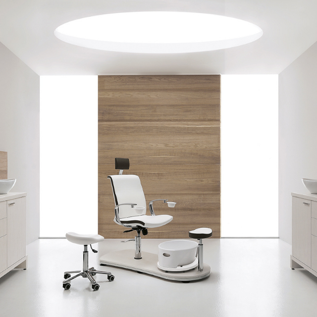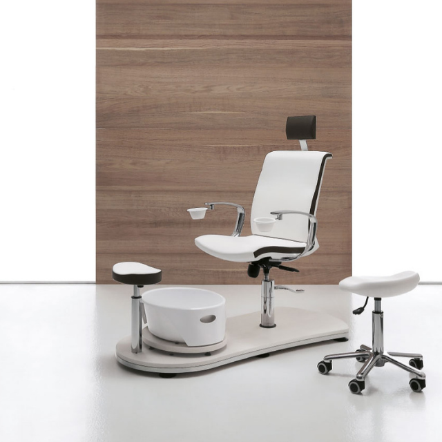 De podotherapeutische stoel Mini Island Evo biedt u comfort dankzij zijn veelzijdigheid en is tot in elk detail goed afgewerkt. In hoogte verstelbare zitting, 360° draaibaar, verstelbare rugleuning, in hoogte verstelbare hoofdsteun voor een perfecte wellness behandeling. Er zijn twee comfortabele kommen die onder de armleuningen kunnen verdwijnen om meer ruimte over te laten. De pedicurebak is afneembaar voor een gemakkelijkere watervulling. De praktische voetensteun is in hoogte en diepte verstelbaar. De bodemplaat heeft een rand in micro geborstelde staal. Het platform is kras vast en is uitgerust met rubberen stoppers voor een grotere stabiliteit van het bassin.