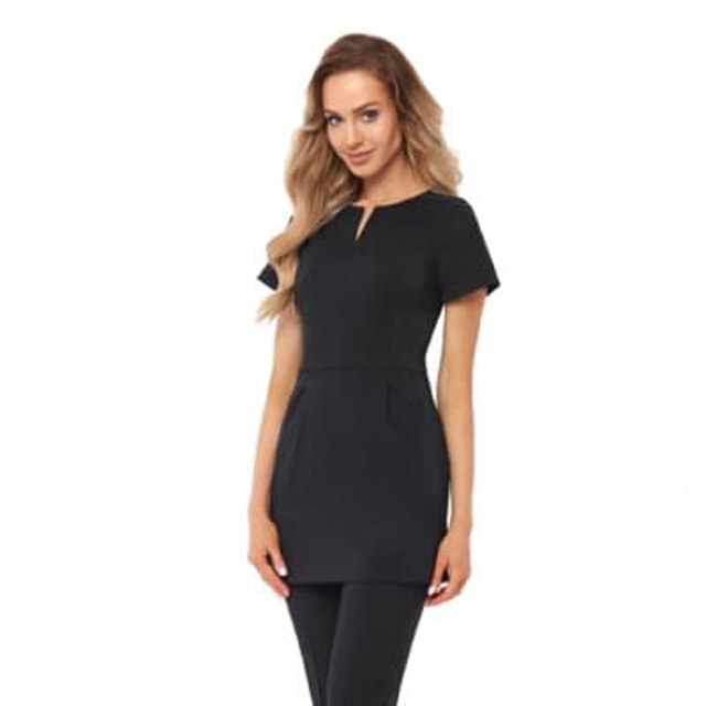 Black bi-stretch schort. Onze elegante praktijkkleding is gemaakt van kwaliteitsstof, Bi-stretch. Dit is een zachte stof die mooi en flexibel is, het rekt zich uit in 2 richtingen. Het heeft een satijnen onderzijde die in contact is met de huid. Al onze kledij is ademend, zeer comfortabel tijdens het dragen en goed te reinigen. De productie- en levertijd van onze uniformen is 5 tot maximaal 10 werkdagen.