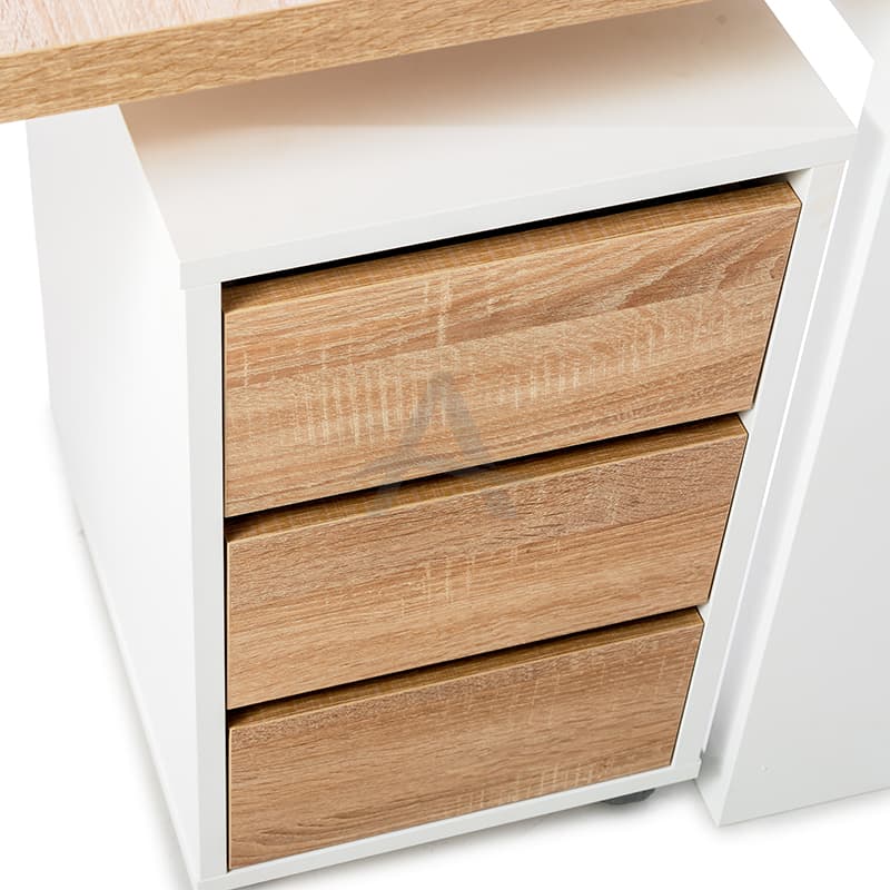 Manicure tafel LIVING van VISMARA. Zeer degelijk en mooi vormgegeven. Standaard in kleur Bardolino Oak, ook mogelijk in kleur white larche of natural wengé. Eenvoudige zelf installatie. Productie +/- 14 werkdagen in Milaan.