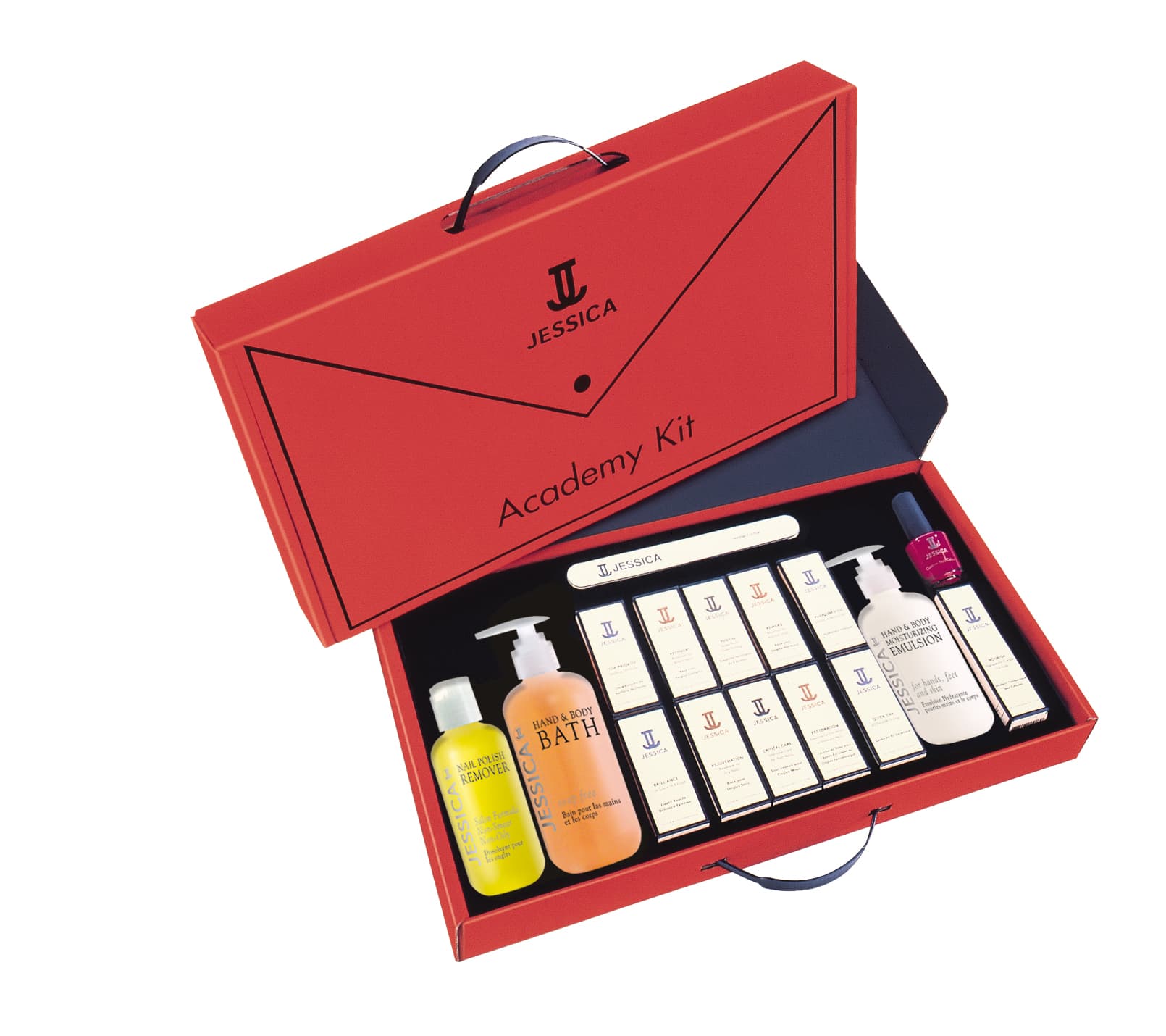 Kit bevat: 1 JESSICA Custom Colour, 1 Rejuvenation, 1 Recovery, 1 Reward, 1 Restoration, 1 Top Priority, 1 Fusion, 1 Brilliance, 1 Phenomen Oil, 1 Quick Dry, 1 Nourish 14,2 g, 1 Critial Care, 1 Hand & Body Bath 236 ml, 1 H & B Moisturizing Emulsion 251 ml, 1 nagellakremover 118 ml, 3 vijlen: Short/Peeling; Dry/Damage; Normal/Brittle, 1 Orangewood stick, 1 kleurenkaart, 1 salongids + 1 CD