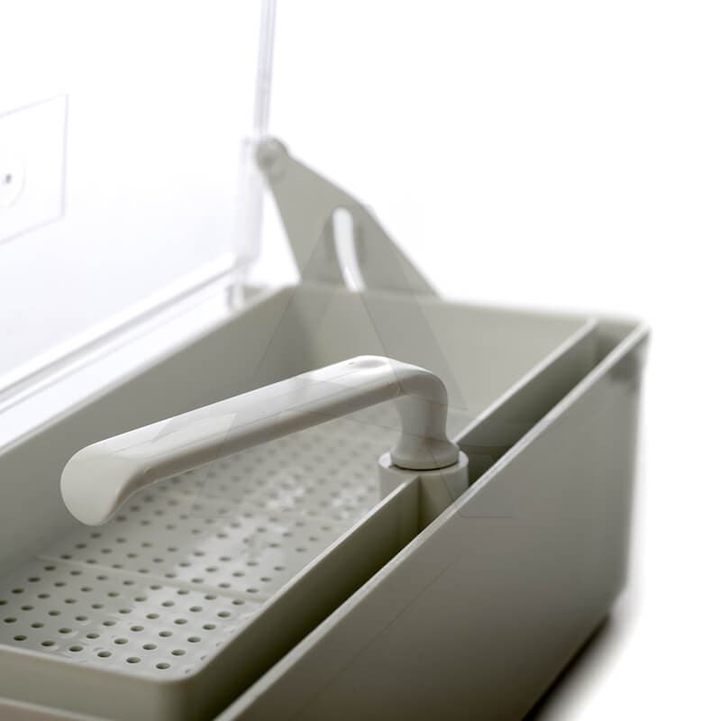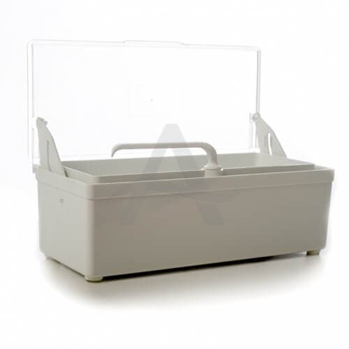 Desinfectiebak steritray. Praktisch instrumenten desinfectiebak Steritray met uitneembaar uitdruipbak. Gemaakt uit kunstof, met deksel en inleg-tray.