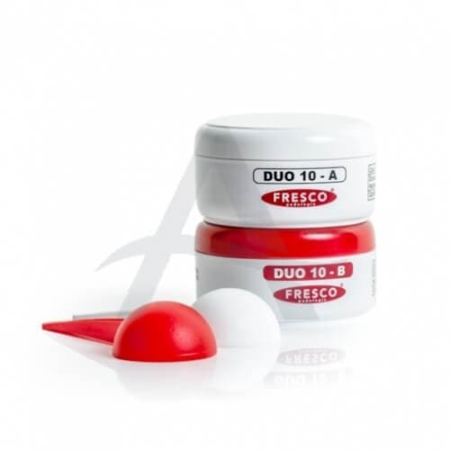 Praktische manier om orthesen te maken: A+B fresco bland rosé duo siliconen. Het volstaat om eenvoudig de gelijke hoeveelheid van de 2 componenten (A+B) te mengen tot er een pasta ontstaat met een homogene kleur (na ong. 30 - 40 sec.). U kan daarna direkt de prothese maken. Beschikbaar als: