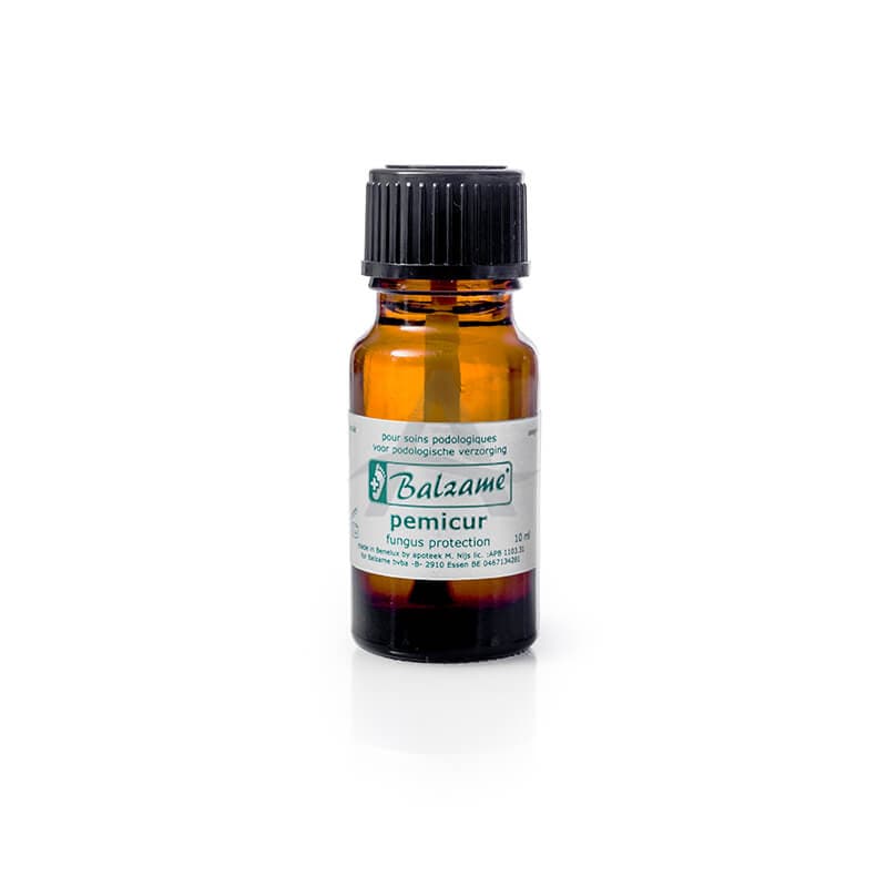 Balzame Pemicur bevat o.a. Eucalyptus, Tea Tree en Thijm samen met Piroctone Olamine. Hij dient als vloeibare behandeling bij schimmel. Omdat hij vloeibaar is dringt ie gemakkelijk door de nagel heen en wordt hij goed verspreid in de nagelrand. Na volledige verwijdering van de nagel, wordt een permeabele kunstnagel aangebracht bv. Acrytensil van R. Fräser, zodoende kan de Pemicur doorheen de kunstnagel dringen en het nagelbed en -rand beschermen tegen schimmel.
