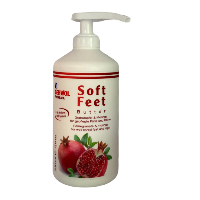 De Gehwol Soft Feet Butter Granaatappel bevat ook hyaluron, vitamine E en avocado-olie die de regeneratie van de huid ondersteunt en de huideigen afweerkracht versterkt.